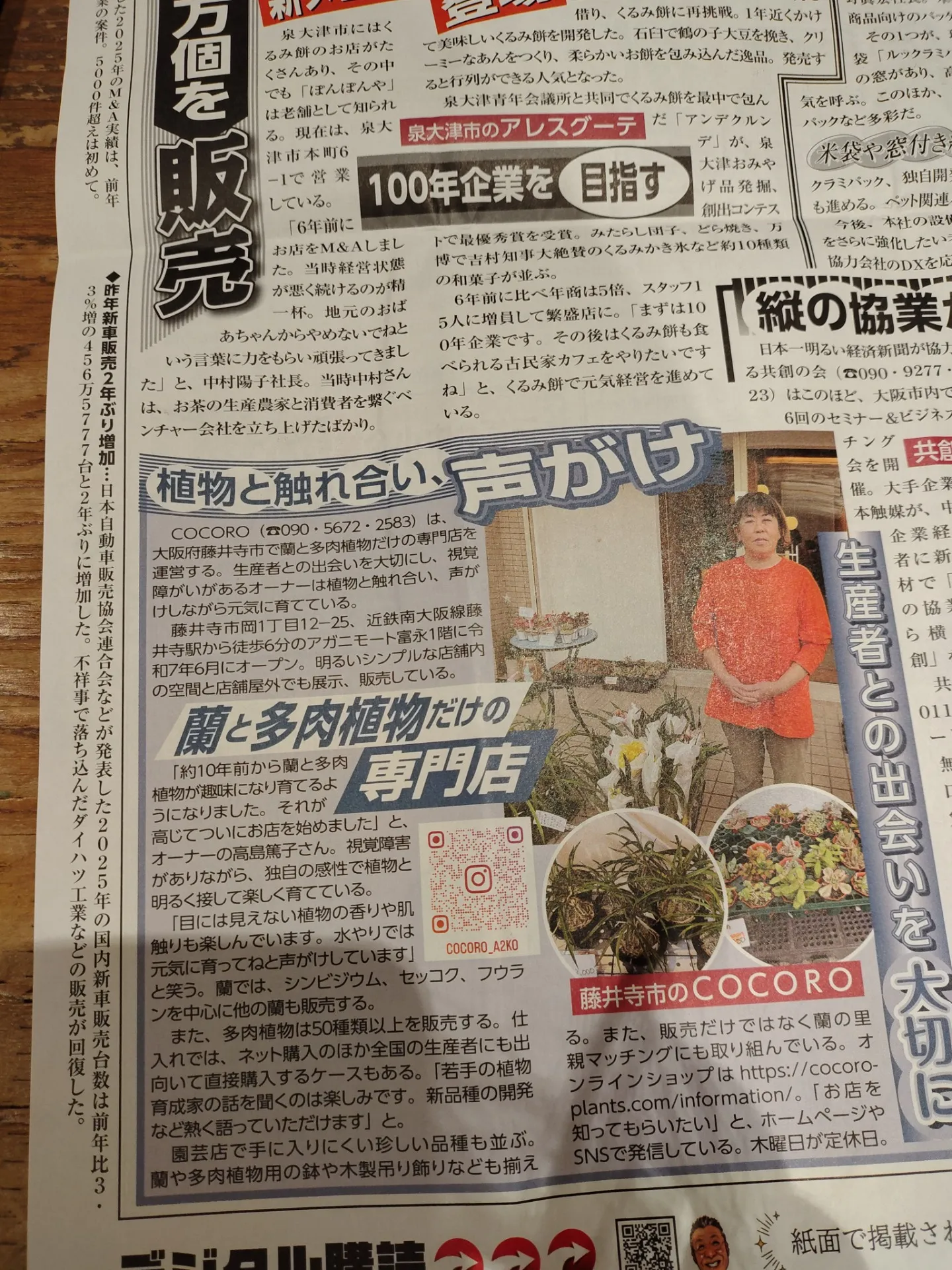 藤井寺で蘭と多肉植物を楽しむ暮らしを | 日本一明るい経済新聞に掲載されました