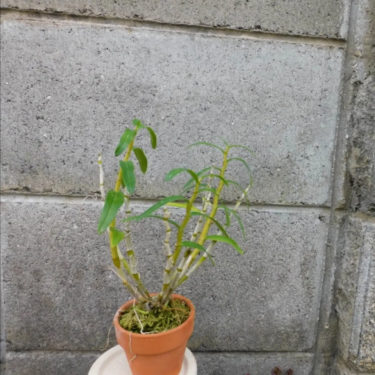 2.5号の素焼き鉢に、水苔で植えた状態で鉢底からの高さは約20㎝です。鉢のサイズは、上部直径約7.5㎝、高さ約7㎝です。
