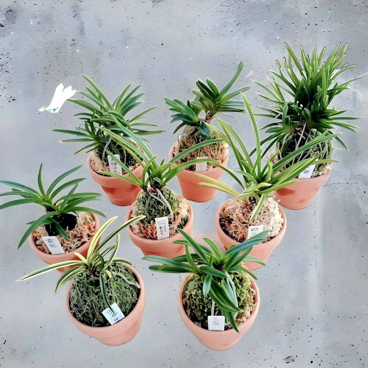 生産者さんの元で厳選された丈夫で育てやすい品種を、さまざまな花色や葉色のものを組み合わせ、8種セットにしてお届けします。花色や品種はお選びいただけませんが、どの花色も、風蘭特有の甘い香りと共に楽しんでいただけると思います。