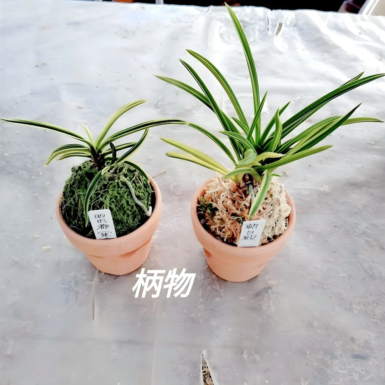 2.5号の素焼き鉢。水苔。苗。鉢に植えてのお届けです。